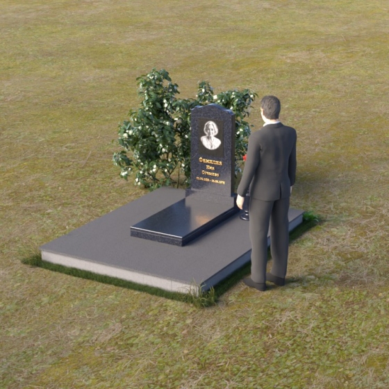 Плавные линии и обтекаемые формы этого надгробия символизируют покой и умиротворение, которые обретает душа после земных испытаний. Волнообразный верх стелы напоминает о небесном своде, о бесконечности бытия и о надежде на вечную жизнь. Зеркальная полировка камня, отражая окружающий мир, говорит о неразрывной связи между миром живых и миром ушедших. Она словно приглашает нас заглянуть вглубь себя, вспомнить о своих корнях и задуматься о смысле жизни.