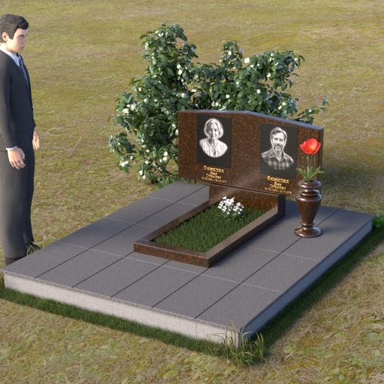 Форма этого памятника символизирует покой и защиту. Прямые линии и четкие грани говорят о стабильности и надежности, а скошенные углы смягчают строгость и добавляют нотку современности. Общая композиция создает ощущение умиротворения и вечности, напоминая о том, что память о близких будет жить в наших сердцах всегда.