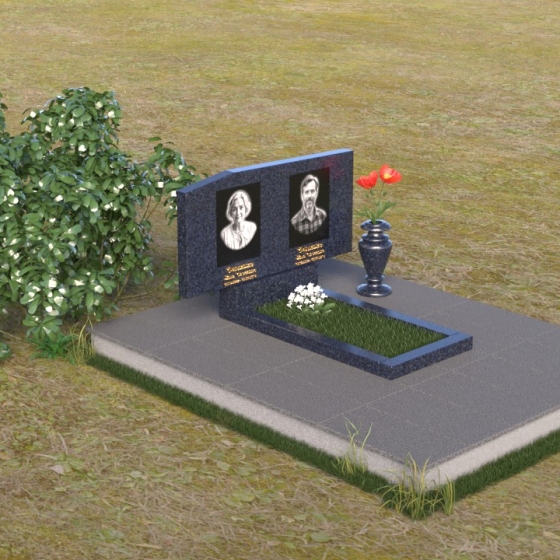 Основным элементом композиции является вертикальная плита, возвышающаяся над прямоугольным основанием. Гранитная плита имеет слегка вогнутую форму верхней грани, что придает ей мягкость и визуально облегчает массивность. На отполированной до зеркального блеска поверхности выгравированы портреты усопших, выполненные с высокой степенью детализации. Под портретами располагаются надписи с именами и датами жизни, выполненные строгим шрифтом. Вся композиция пронизана чувством сдержанности и достоинства, что позволяет сосредоточиться на главном – на памяти о тех, кого больше нет рядом.