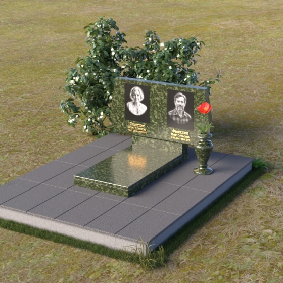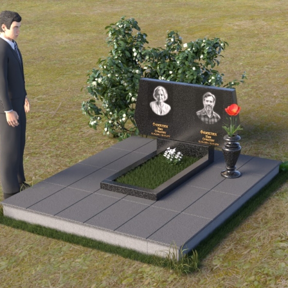 Представляем вам ритуальное изделие – памятник на могилу (Артикул: ПГ018), архитектурное решение, в котором строгость линий сочетается с глубоким символизмом. Это не просто надгробие, а осязаемое воплощение уважения и вечной памяти об ушедшем человеке. Стела, выполненная в форме сдержанного прямоугольника, слегка расширяющегося кверху, символизирует восхождение души к небесам. Грани камня тщательно обработаны, создавая игру света и тени, подчеркивающую монументальность и значимость этого места памяти. Слева и справа, верхние углы стелы имеют элегантные скосы, смягчающие строгость формы и придающие ей утонченность. На зеркальной поверхности камня выгравированы портреты усопших, их имена и даты жизни, выполненные с безупречной точностью и вниманием к деталям. Под портретами располагаются лаконичные надписи, выполненные строгим шрифтом, добавляющие памятнику сдержанности и достоинства. Дополнительная горизонтальная плита, расположенная перед стелой, создает ощущение завершенности и служит местом для возложения цветов или свечей. Этот элемент композиции выполнен в той же стилистике, что и основная стела, поддерживая общую гармонию и пропорциональность мемориального комплекса.