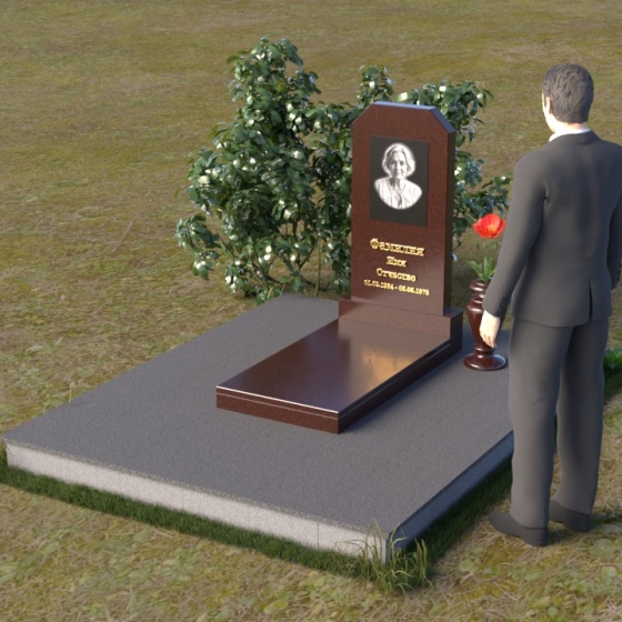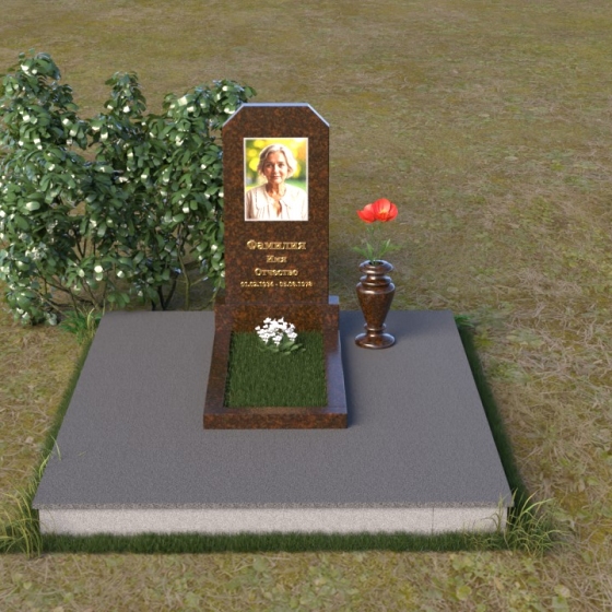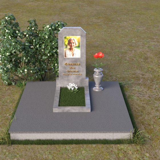 Оформление: Для этой формы надгробия рекомендуется использовать гравировку портрета в верхней части стелы, а ниже разместить ФИО и даты жизни. Четкий шрифт и лаконичный стиль надписи подчеркнут строгость и элегантность композиции. Портрет, выполненный с высокой детализацией, позволит сохранить образ ушедшего в памяти близких.