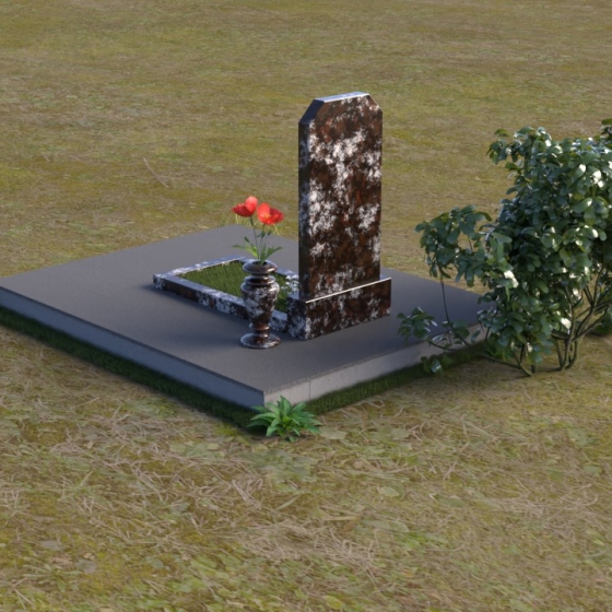 Надгробие из натурального камня (артикул ПВ 066) представляет собой строгое и лаконичное решение, в котором геометрия форм подчеркивает величие и достоинство ушедшего. Вертикальная стела, слегка расширяющаяся кверху, завершается аккуратными скошенными углами, смягчающими строгость линий. Полированная поверхность камня отражает окружающий мир, создавая ощущение зеркальной глади, в которой, кажется, можно увидеть отблески прошлого. Прямоугольная подставка, выполненная в той же цветовой гамме, обеспечивает устойчивость конструкции и гармонично дополняет ее. Отдельно стоящая ваза из черного гранита, с плавными очертаниями, добавляет композиции завершенность и позволяет разместить живые цветы в память об усопшем.