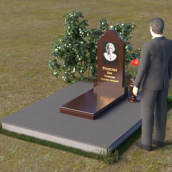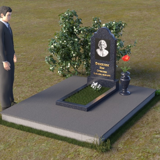 Арка, венчающая стелу, традиционно символизирует переход – врата в иной мир, обещание небесного покоя. Скругленные углы смягчают строгость камня, олицетворяя нежность и заботу, которые мы испытываем к ушедшим. Зеркальная полировка поверхности камня отражает свет, создавая ощущение чистоты и возвышенности. Горизонтальная плита символизирует основательность и стабильность, напоминая о прочной связи между поколениями. Общая форма композиции создает ощущение защиты и умиротворения, словно оберегая память о дорогом человеке от забвения.