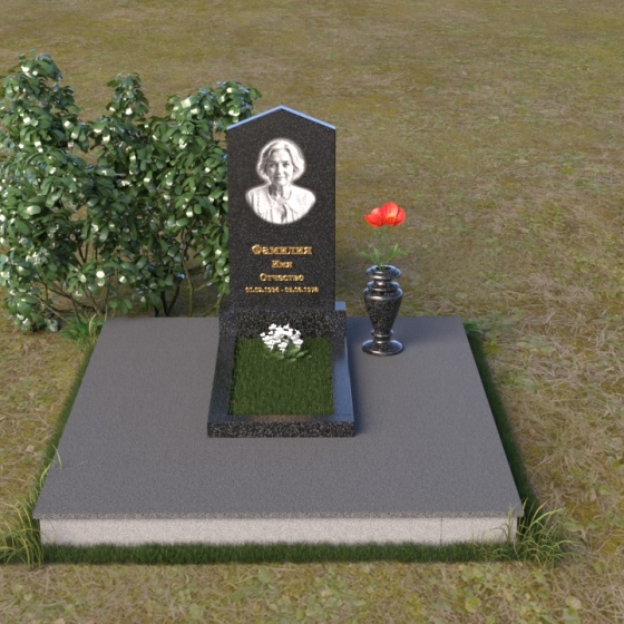 Форма стелы, сочетающая строгость линий и мягкость изгибов, символизирует гармонию земного и небесного. Скругленная вершина, напоминающая купол, олицетворяет защиту и покой, а прямоугольное основание – устойчивость и незыблемость памяти. Зеркальная полировка камня создает эффект отражения, напоминая о том, что ушедший человек навсегда останется в наших сердцах, как отражение в зеркале времени. Композиция создает ощущение умиротворения и надежды, напоминая о вечности души.