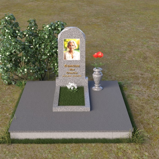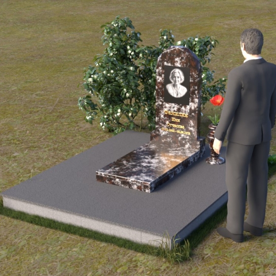 Форма стелы ПВ 069 предоставляет прекрасные возможности для размещения портрета и памятной надписи. Изображение можно расположить в верхней части стелы, где оно будет хорошо освещено и заметно. Золотое тиснение имени и дат жизни на темном фоне гранита создает элегантный контраст и добавляет торжественности. Вертикальное расположение текста гармонично сочетается с формой стелы и позволяет разместить достаточное количество информации, чтобы выразить всю глубину вашей любви и скорби. Рядом со стелой можно установить небольшую вазу для цветов, которая станет символом неувядающей памяти и заботы. Маленькая гранитная плита, расположенная перед стелой, может служить местом для возложения венков или памятных вещей.
