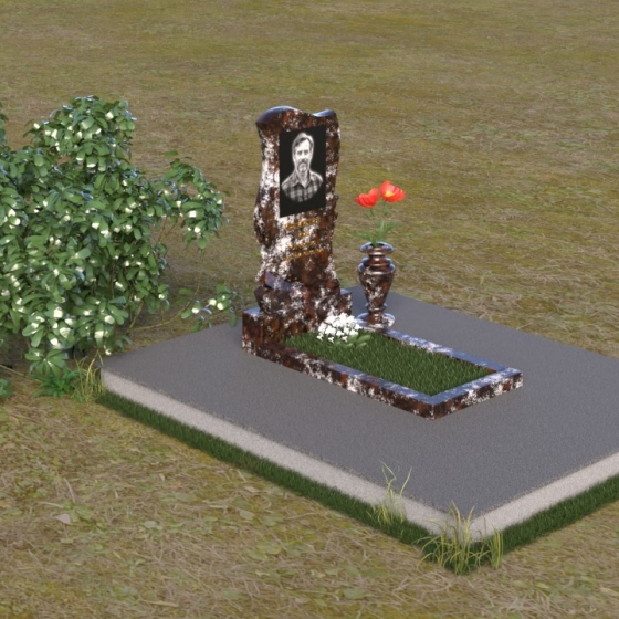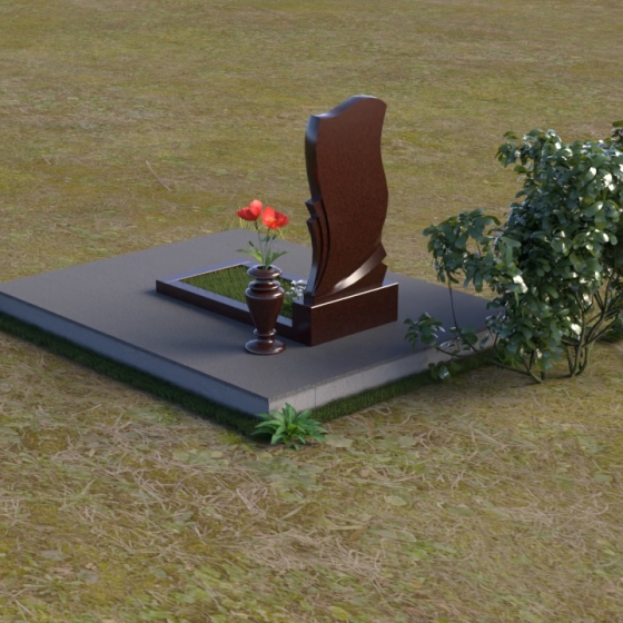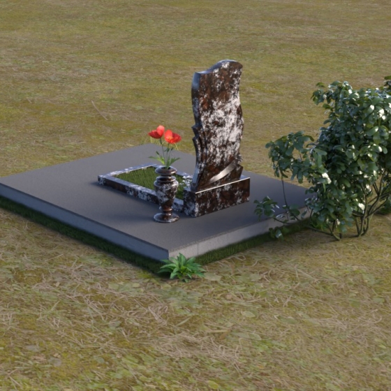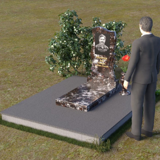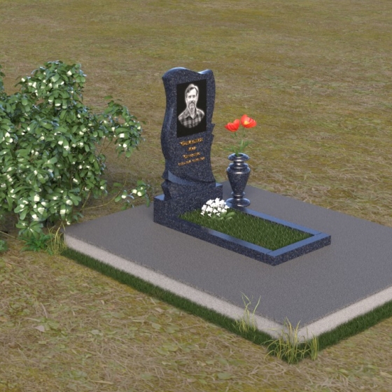 Волнообразная форма стелы предоставляет широкие возможности для размещения портрета и памятной надписи. Фотография усопшего, расположенная в верхней части стелы, будет выглядеть особенно выразительно на фоне полированного камня. Изящная надпись, выполненная методом гравировки, подчеркнет индивидуальность и неповторимость личности. Можно добавить декоративные элементы: изображение цветов, таких как роза, символизирующих любовь и вечную память, или других символов, близких сердцу усопшего. Ваза, изящно дополняющая композицию, может быть наполнена свежими цветами, создавая атмосферу умиротворения и светлой печали. Темный цвет камня создает благородный контраст с яркостью живых цветов, помещенных в вазу.